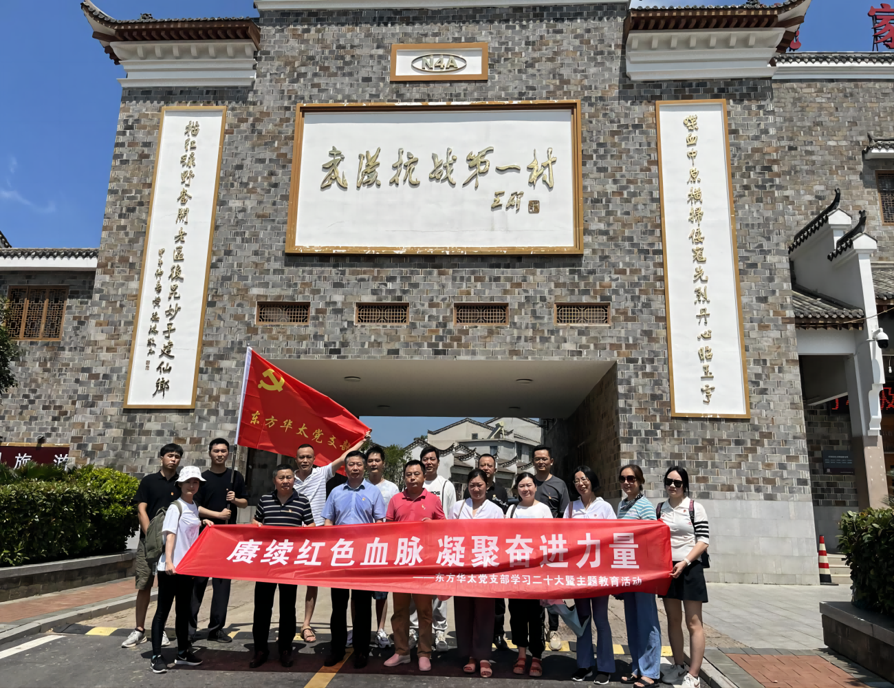 2023年8月5日,黨支部結(jié)合企業(yè)特點(diǎn)和支部工作安排,認(rèn)真落實(shí)黨支部主題黨日“5+N”模式,創(chuàng)新黨史學(xué)習(xí)教育載體,組織全體黨員、入黨積極分子代表等前往武漢抗戰(zhàn)第一村---姚家山新四軍第五師機(jī)關(guān)舊址紅色教育基地,開(kāi)展“賡續(xù)紅色血脈 凝聚奮進(jìn)力量”學(xué)習(xí)二十大暨主題“沉浸式”紅色教育活動(dòng)。以“行走黨課”作為理論研習(xí)的重要載體,通過(guò)大家喜聞樂(lè)見(jiàn)的方式推進(jìn)偉大建黨精神內(nèi)化于心、外化于行,共同締造出了“可見(jiàn)”、“可讀”、“可聽(tīng)”的行走路線。感受革命奮斗歷程,傳承紅色基因,營(yíng)造見(jiàn)賢思齊、比學(xué)趕超的濃厚氛圍。