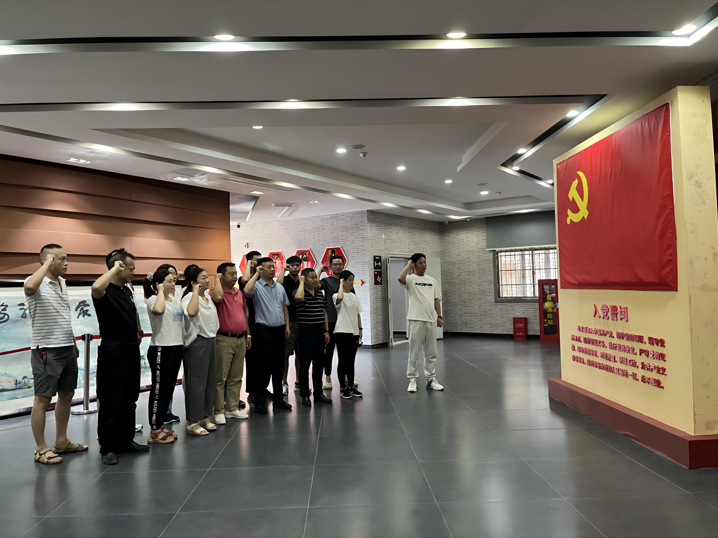 天朗氣清,惠風(fēng)和暢。在8月5日上午十點(diǎn),全體黨員同志、入黨積極分子代表來(lái)到武漢抗戰(zhàn)第一村---姚家山新四軍第五師舊址紅色教育基地。面對(duì)鮮紅的黨旗,黨員們一起重溫入黨誓詞。“我志愿加入中國(guó)共產(chǎn)黨,擁護(hù)黨的綱領(lǐng),遵守黨的章程……永不叛黨?!卞P錚誓言響徹大地。重溫入黨誓詞,既是是初心使命的再宣示、更是接續(xù)奮斗的再出發(fā)。