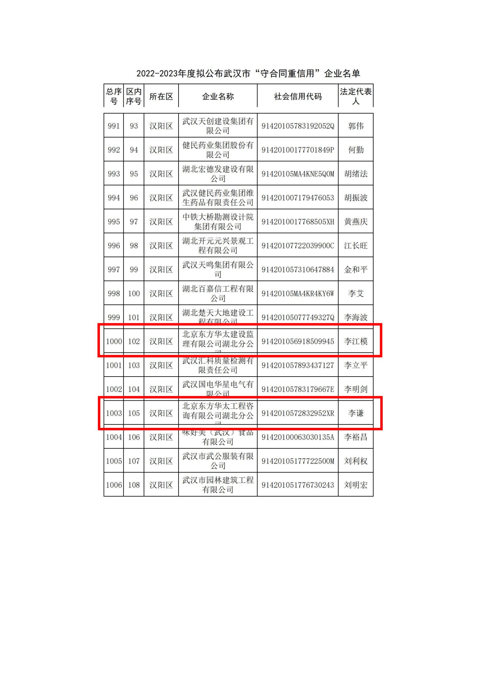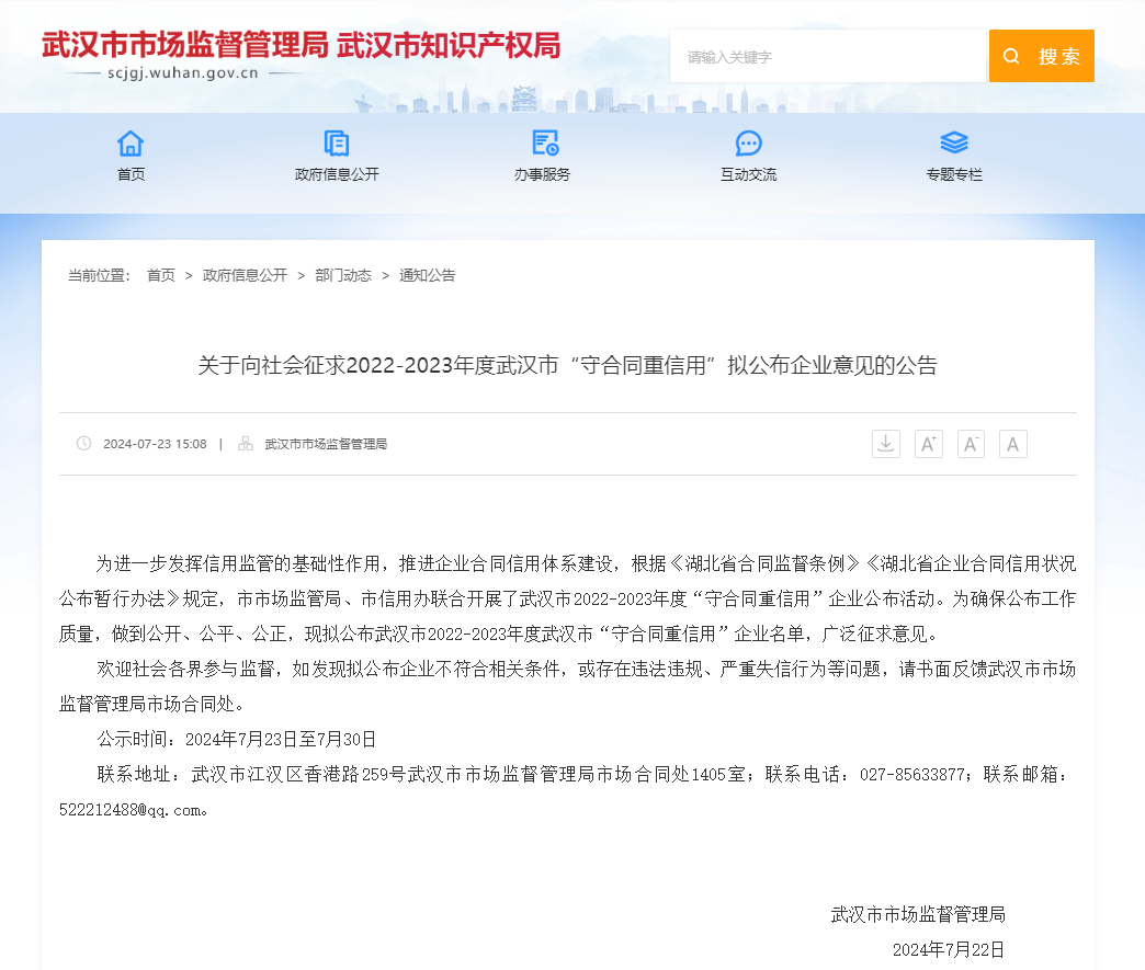 近日,武漢市市場監(jiān)督管理局、市信用辦聯(lián)合開展的“武漢市2022-2023年度‘守合同重信用’”企業(yè)名單已公布,東方華太公司憑借規(guī)范的合同管理體系和良好的社會信用,成功上榜。